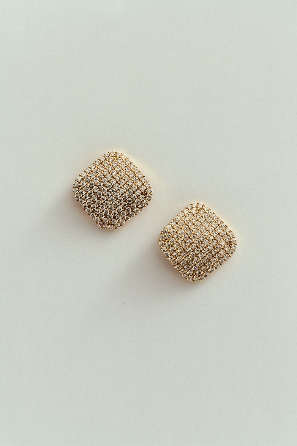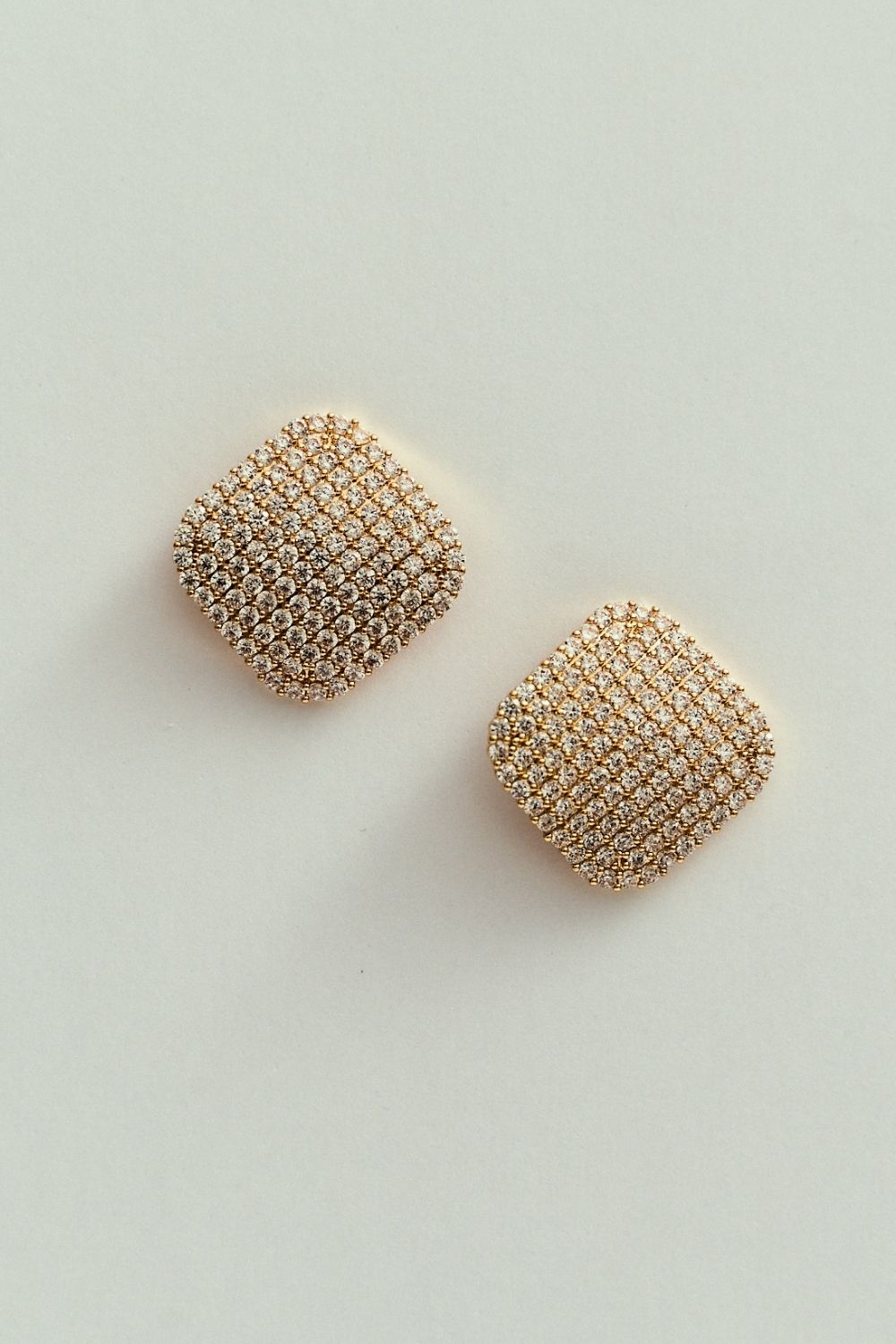 Brinco Botão Quadrado Cravejado Dourado